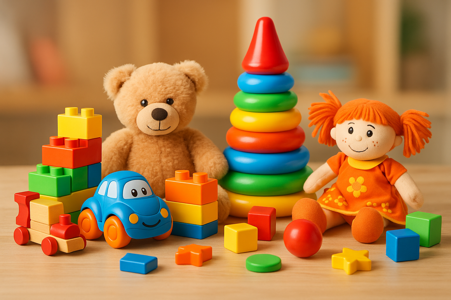 kleurrijk, veilig en leerzaam speelgoed dat kinderen helpt om hun fantasie te ontwikkelen en spelenderwijs te leren. Geschikt voor peuters en kleuters, met zachte vormen, felle kleuren en duurzame materialen.